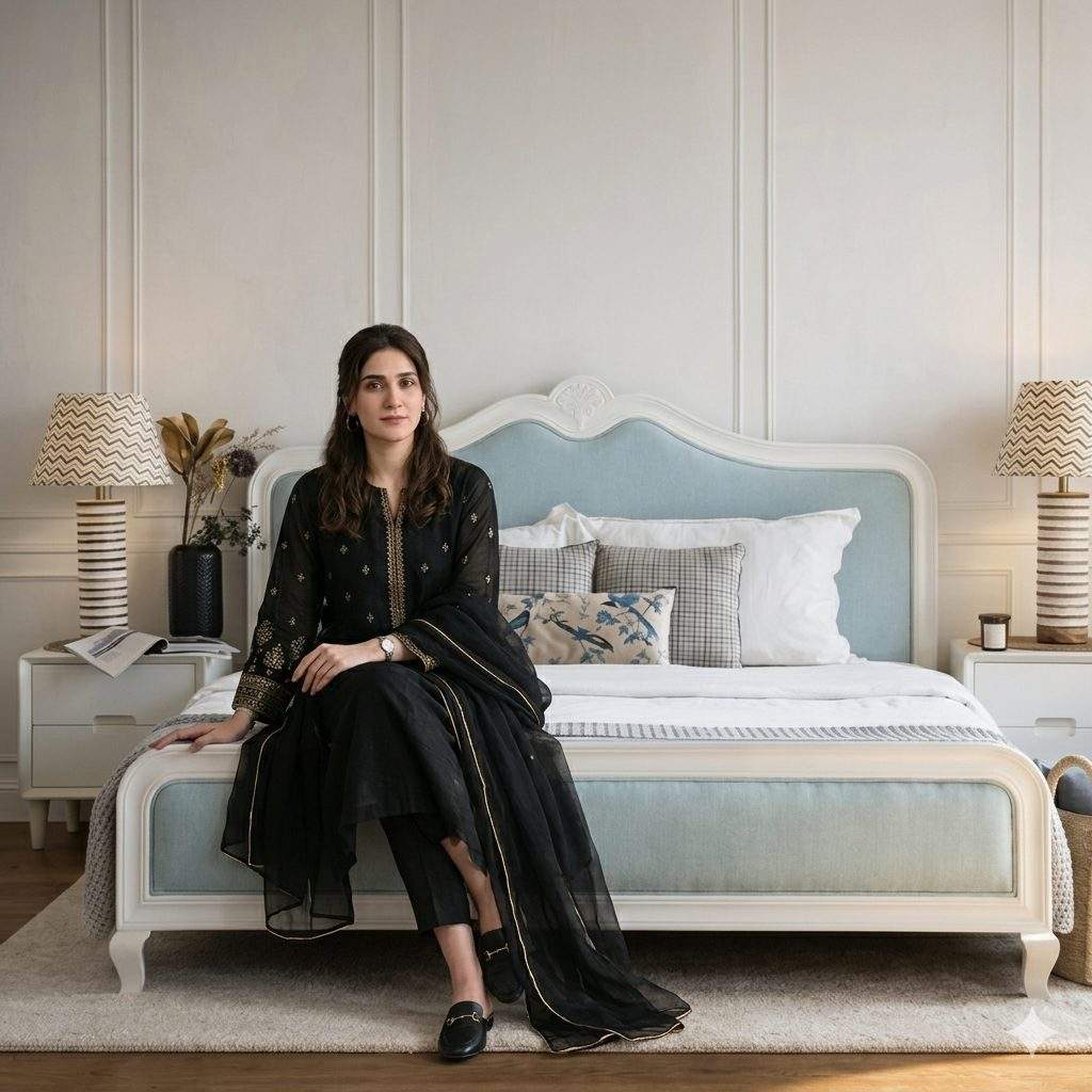Inspired by traditional Chinioti furniture craftsmanship and enhanced with modern Victorian aesthetics, this bed is ideal for homes in Islamabad, Rawalpindi, and across Pakistan. Its intricate carvings, premium wood construction, and refined finishing make it a statement piece for any bedroom.