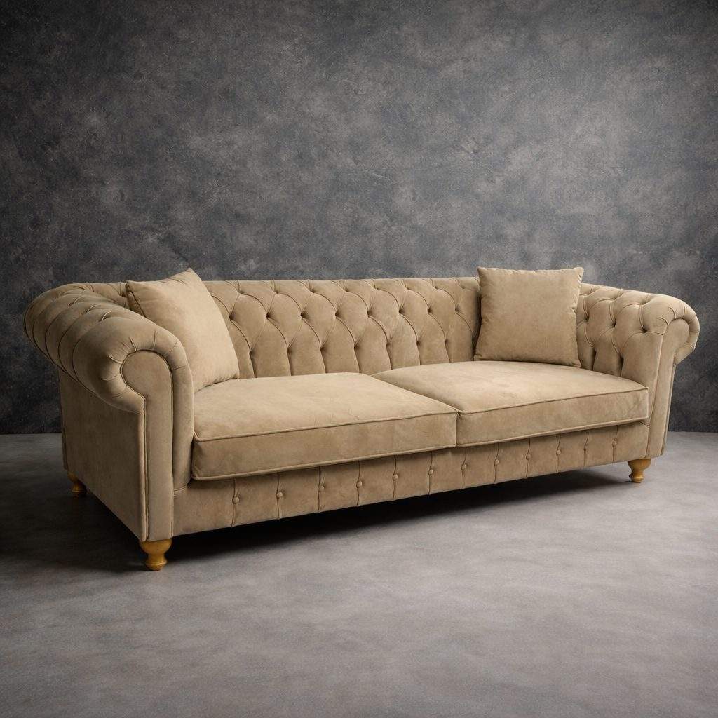 Premium 3 Seater Modern Chesterfield Sofa in Beige Luxury Comfort by Homefactree