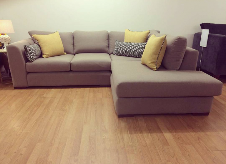 A simple yet elegant sectional sofa that will brighten up your space.Its a quality value for your money. Size 9x7 ft